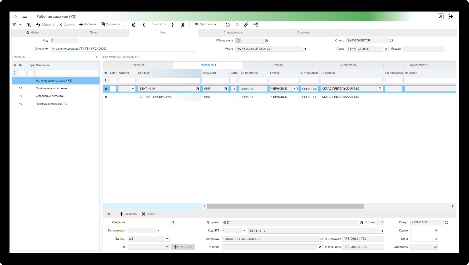 Контроль статусов работ, формирование отчетов и заявок на МТР